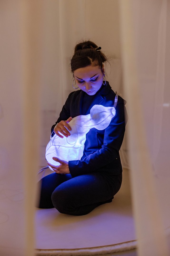 Am întâlnit-o pe Laura în atelierul ei din Haga (are și unul în Amsterdam), unde făcea ultimele ajustări la instalația cu care participă la DDW în Eindhoven. The Alien Between Us: Intimacy Through Biofeedback, sau, altfel spus, Extraterestrul dintre noi: Intimitate prin biofeedback, este lucrarea de masterat a Laurei A. Dima, invitată pentru a treia oară la Dutch Design Week.