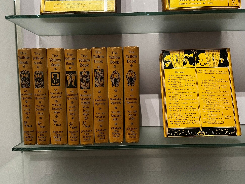 În Anglia, simbolismul atinge punctul culminant odată cu apariția revistei The Yellow Book, concepută de Aubrey Beardsley. Coperta galben intens, cu grafică neagră contrastantă, devine un manifest vizual. Este, după cum spune textul de promovare, o revistă „seducătoare, îndrăzneață, distinsă”. Reputația publicației este însă afectată după arestarea lui Oscar Wilde, când presa relatează că scriitorul avea, la momentul arestării, „o carte galbenă sub braț”. Galbenul rămâne, pentru mulți, culoarea provocării morale.