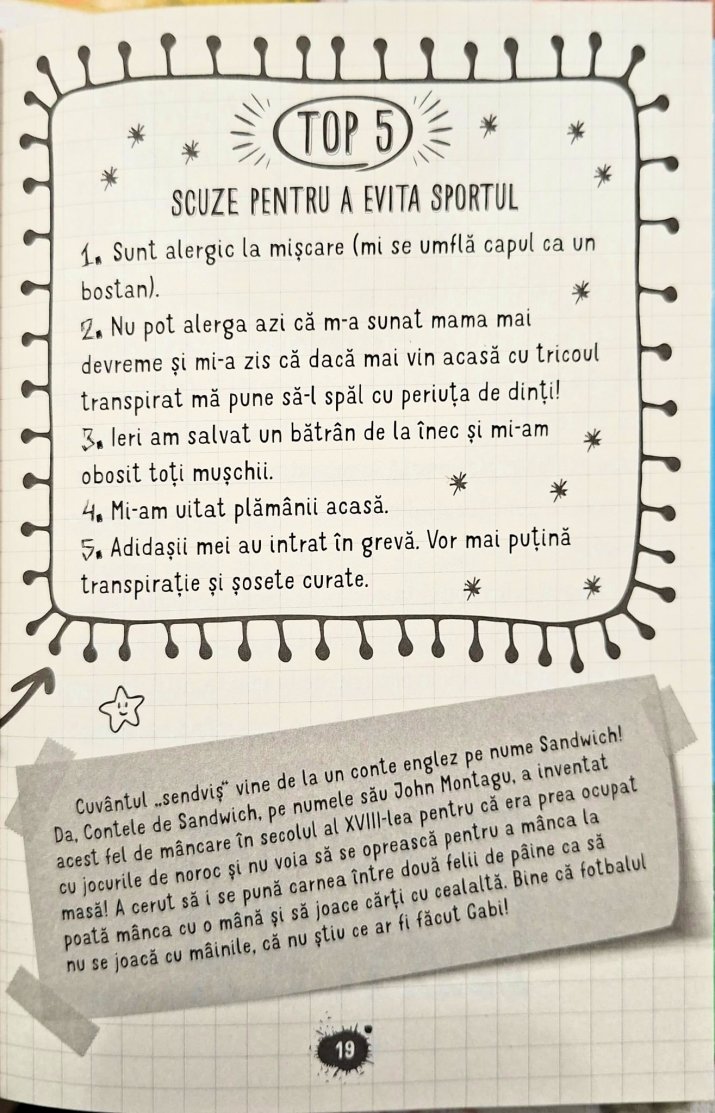Autorul a introdus și mici lecții de etimologie, inspirate dintr-un dicționar etimologic primit de personajul principal. Astfel, copiii descoperă în joacă originea cuvintelor – de la sandwich la hamster sau campion.