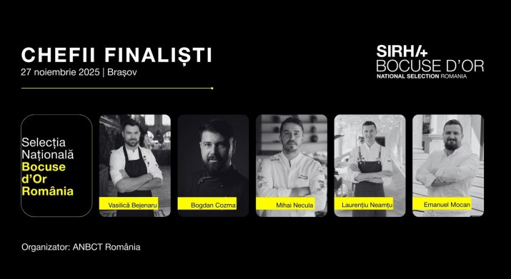 Selecția Națională Bocuse d’Or România are loc pe 27 noiembrie 2025, la Brașov, într-o probă de 6 ore în care cinci echipe vor concura pentru un singur loc în competiția europeană. Echipa câștigătoare va concura la Bocuse d’Or Europe 2026, Marsilia, unde doar 10 echipe se califică în finala mondială Bocuse d’Or 2027, Lyon.