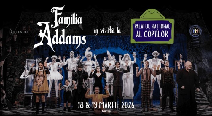 Celebrul musical FAMILIA ADDAMS, semnat de Răzvan Mazilu la Teatrul EXCELSIOR din București, va avea două reprezentații la Palatul Național al Copiilor - miercuri, 18 martie și joi, 19 martie 2026, de la ora 19:00, iar biletele sunt deja puse în vânzare pe website-ul www.teatrul-excelsior.ro.